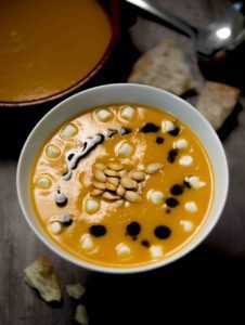 - Serve immediately with croutons sprinkled on top. (Alternatively, you can serve the soup topped with fried crispy bacon, in place of the croutons.)
